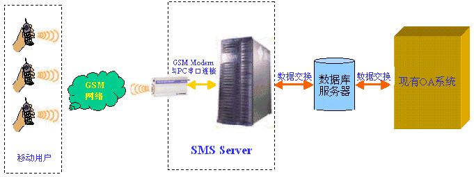 短信收發(fā)服務器是通過數據交換的方式與您的系統進行連接,目前支持數據庫的交換方式,可以通過Oralce、MS SQL SERVER 、MS ACCESS等關系型數據庫和現有系統進行數據交換。