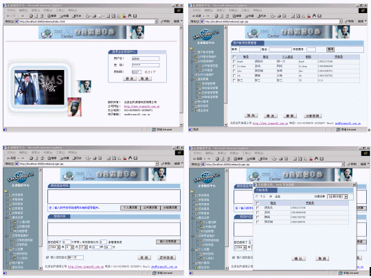 企業(yè)里的每個(gè)用戶要實(shí)現(xiàn)短信發(fā)送,僅需一臺電腦,然后利用瀏覽器就可以實(shí)現(xiàn)分組發(fā)送(如:會議通知、緊急通知)、定時(shí)群發(fā)(如:提醒短信、恭賀短信、祝福短信)、以及接收工作情況匯報(bào)短信等,系統(tǒng)提供通訊薄管理,可編輯常用短語。服務(wù)器端支持多個(gè)GSM設(shè)備群發(fā),滿足不同發(fā)送短信量的需要?煨┫螺d系統(tǒng)的動(dòng)畫演示,新增功能多多。!