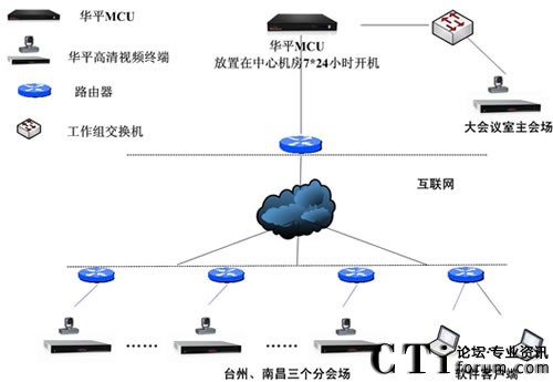 華平根據(jù)東森控股的實(shí)際需求,為用戶搭建了覆蓋上海、南昌、臺(tái)州辦公區(qū)、臺(tái)州營(yíng)業(yè)部的高標(biāo)清混合組網(wǎng)和軟硬件混合組網(wǎng)方案。系統(tǒng)基于公共互聯(lián)網(wǎng)實(shí)現(xiàn)部署,并充分利用了華平多種網(wǎng)絡(luò)接入混合的優(yōu)勢(shì),并采取MCU雙網(wǎng)卡接入解決方案,全面實(shí)現(xiàn)了電信、網(wǎng)通的網(wǎng)絡(luò)良好互通,系統(tǒng)極大的拓展了應(yīng)用的范圍,即使在差旅途中,只要能接入Internet網(wǎng)絡(luò),用戶就可以輕松地參與會(huì)議交流,如同身與各方坐一個(gè)會(huì)議室。系統(tǒng)還提供強(qiáng)大的數(shù)據(jù)輔助功能,參會(huì)者可以將各種需要交流的數(shù)據(jù)、圖形、報(bào)表、文字等信息同步顯示給所有相關(guān)人員,方便的進(jìn)行工作交流,業(yè)務(wù)匯報(bào)和討論等,使異地溝通變的更加簡(jiǎn)單和自如。