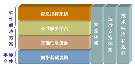 根據突發(fā)公共事件突發(fā)性、區(qū)域性、持續(xù)性等特點,以及應急組織指揮機構及其職責、工作流程、應急響應、處置步驟、處置方案等應急業(yè)務的集成,應急指揮系統(tǒng)基礎平臺建設主要包括以下幾個方面。