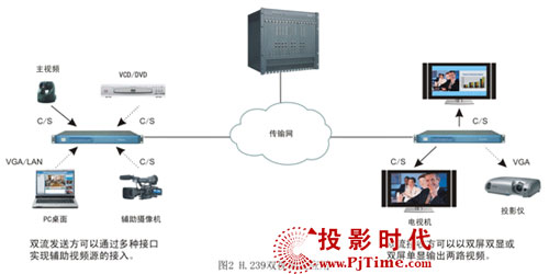 科達(dá)H.239雙視頻流具有非常靈活的輔助視頻輸入和輸出特性。其中,輸入支持VGA、復(fù)合端子、S端子、以太網(wǎng)等多種接口,PC桌面講稿等內(nèi)容可通過VGA輸入發(fā)言會場終端,不方便直接接入的PC桌面可借助LAN通過以太網(wǎng)輸入發(fā)言會場終端,資料碟片(VCD/DVD)、實物外觀(輔助攝像機(jī))可通過復(fù)合端子、S端子輸入發(fā)言會場終端。雙流輸出支持雙屏雙顯和雙屏單顯,雙屏雙顯時,主視頻和輔助視頻通過兩臺顯示設(shè)備分別輸出,雙屏單顯時,主視頻和輔助視頻以畫中畫或一左一右形式通過單臺顯示設(shè)備輸出。