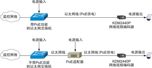 KDM2440P集成了以太網(wǎng)供電(PoE)功能,可在一根以太網(wǎng)線上同時實現(xiàn)IP碼流傳輸和電源信號輸入,利用該電源信號,除了可以對設(shè)備本身進(jìn)行供電外,還可以輸出1路電源信號用于攝像機(jī)供電*。通過PoE,用戶無需另布電源線,可有效簡化前端部署、節(jié)約系統(tǒng)成本,而且,還便于在中心部署不間斷電源(UPS),以提升系統(tǒng)可靠性和穩(wěn)定性。