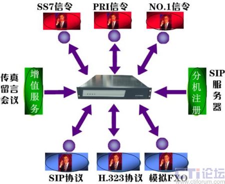 傳統(tǒng)信令協(xié)議方式包括N0.7信令、NO.1信令、ISDN-、 FXO(環(huán)路中繼)VOIP 信令協(xié)議包括SIP、H.323,同時支持多種協(xié)議/多種中繼的接入,不用增加、更換任何硬件設(shè)備和任何配件即可靈活地實現(xiàn)傳統(tǒng)交換機(jī)與軟交換網(wǎng)絡(luò)的無縫連接,為企業(yè)實現(xiàn)IP通信降低了門檻。