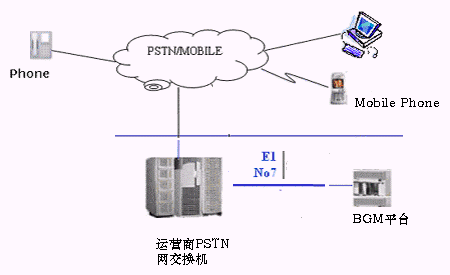彩話(BGM-- Background Music)業(yè)務,就是在雙方通話過程中播放的由用戶事先點播的背景音樂。這項業(yè)務更多的作為一種精神消費時尚,電信運營商可作為一種時尚推出,可以定位為帶背景音樂的電話業(yè)務。BGM與CRBT(彩鈴業(yè)務)技術(shù)原理基本相同,具體來說,就是申請業(yè)務的用戶可以通過多種方式設(shè)置或管理在與他人通話時的背景音樂,這項業(yè)務可以兩種方式來實現(xiàn),當然,無論何種模式都不影響交換機的原有通話業(yè)務。