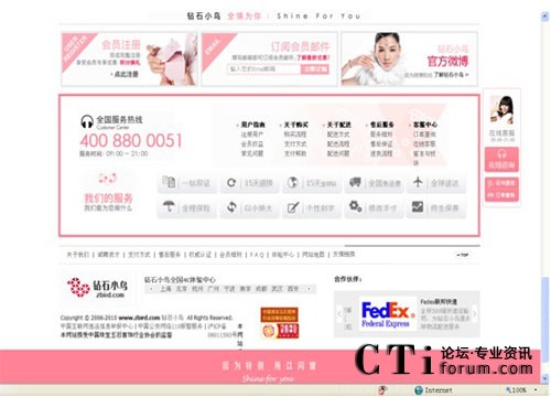 今天,鉆石小鳥在廣大用戶以及熱誠網(wǎng)友的支持下不斷發(fā)展,已經(jīng)成為中國網(wǎng)絡(luò)鉆石銷售的代名詞。作為中國網(wǎng)絡(luò)鉆石行業(yè)“鼠標(biāo)+水泥”的開創(chuàng)者,鉆石小鳥不斷創(chuàng)新,不僅將各種最新技術(shù)手段與客戶體驗?zāi)J綉?yīng)用于網(wǎng)站的開發(fā),不斷升級各地體驗中心的軟硬件服務(wù),更加將鉆石體驗文化拓展到電視媒體、銀行、展會、以及整個婚慶行業(yè)。目前鉆石小鳥已經(jīng)與中國銀行、交通銀行、工商銀行、建設(shè)銀行、招商銀行、光大銀行、民生銀行、上海銀行、東亞銀行建立了網(wǎng)上商場合作和會員積分兌換合作,是各大銀行的優(yōu)質(zhì)合作伙伴,并且連續(xù)兩年獲得工商銀行頒發(fā)的“年度最佳合作伙伴”獎項。2008年,鉆石小鳥榮獲了中國CEO高峰論壇2008“十大最具成長型企業(yè)”的殊榮,成為中國珠寶玉石首飾行業(yè)協(xié)會理事單位、上海黃金飾品行業(yè)協(xié)會理事單位、上海寶玉石行業(yè)協(xié)會理事單位、上海鉆石行業(yè)協(xié)會理事單位,為中國鉆石行業(yè)的繁榮發(fā)展不斷努力。