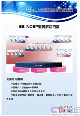 本次參展的EB-NCSP是由EB自主研發(fā),可在PLMN/3G/NGN網(wǎng)絡(luò)上商用的核心業(yè)務(wù)平臺(tái),本系統(tǒng)面向國(guó)內(nèi)電信運(yùn)營(yíng)商和眾多的增值服務(wù)提供商及虛擬運(yùn)營(yíng)商,獨(dú)立于底層通信網(wǎng)絡(luò),提供典型的增值業(yè)務(wù),提供增值服務(wù)的開放業(yè)務(wù)接口。EB-NCSP主要包括:應(yīng)用服務(wù)器AS、媒體服務(wù)器MS,是一個(gè)功能完備并開放的應(yīng)用平臺(tái)。本系統(tǒng)提供規(guī)范而靈活的API接口,支持SIP協(xié)議、中國(guó)INAP/CAP/MAP/ISUP/BICC/H.248/CMPP協(xié)議規(guī)范等;全面支持移動(dòng)網(wǎng)絡(luò)向下一代網(wǎng)絡(luò)-3G發(fā)展所需要的語(yǔ)音、數(shù)據(jù)、多媒體等智能和增值業(yè)務(wù)的平臺(tái),從而實(shí)現(xiàn)真正的跨網(wǎng)絡(luò)的、綜合的、以用戶為中心的業(yè)務(wù)提供平臺(tái)。