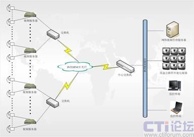 本系統(tǒng)網(wǎng)絡(luò)傳輸采用有線、光纖及無線相結(jié)合的方式,在有條件的地方采用有線的方式,傳輸距離較遠(yuǎn)時(shí)采用光纖傳輸,在布線比較困難的情況下采用無線傳輸?shù)姆绞健?br />