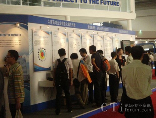 通過”融合通訊系統(tǒng)解決方案”、“中小企業(yè)信息化解決方案”等展板與演示,可以看出大唐高鴻的企業(yè)信息化解決方案可以并且正在全面應(yīng)用于政府、軍隊(duì)煤礦、電力、公安、鐵路、公路、水力等企業(yè)行業(yè)。