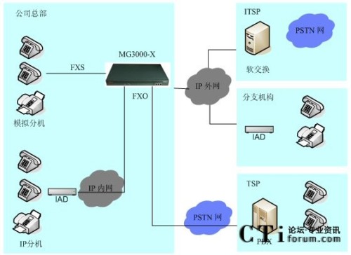 MG3000-X100替代傳統(tǒng)PBX交換機應(yīng)用方案 2009-09-23