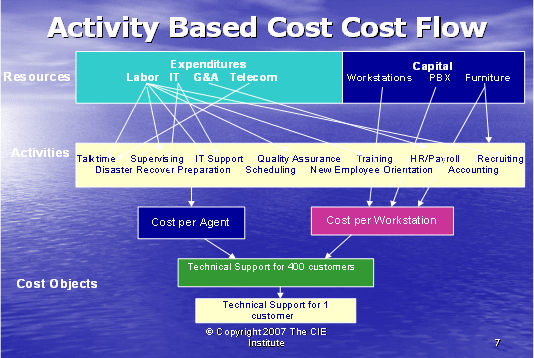 呼叫中心業(yè)務包括大量單獨的行動 — 行動成本法(ABC)使我們跟蹤那些行動以至于更清楚地了解支持一個客戶的所需事項。傳統(tǒng)上,呼叫中心成本是根據(jù)投入來衡量的:人數(shù),設備量,設施的規(guī)模。為了了解服務一個客戶所花費的成本量,呼叫中心的主管必須確定這些行動如何與該客戶相聯(lián)系的。只有做到這一點,行業(yè)才能知道來自該客戶的收入是否超出為其提供服務所產(chǎn)生的成本。如果服務的成本大于收入,那么這個客戶對于行業(yè)來說是無利可圖的,所以確定哪些客戶有利可圖和哪些客戶無利可圖是很重要的,這樣,行業(yè)才可以根據(jù)客戶定價和客戶服務策略有利地進行管理。