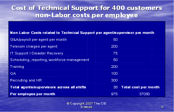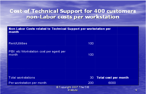 假設你部門由于技術支持,每個座席每小時可以掙20美元。計算你的利潤。