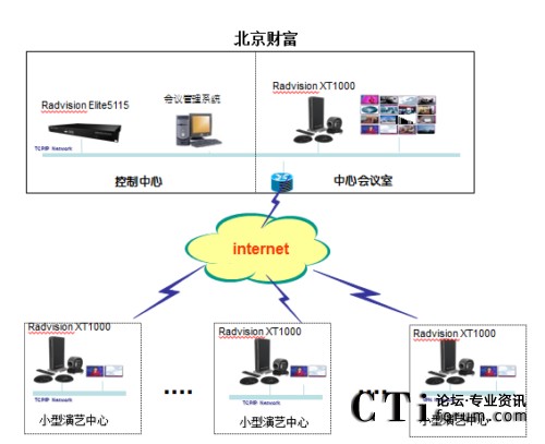 通過多次激烈的討論和無數(shù)次的論證,北京市財(cái)富中心領(lǐng)導(dǎo)最終決定通過打造一套高清視頻會議平臺系統(tǒng)來解決這一棘手的問題。財(cái)富中心的領(lǐng)導(dǎo)希望通過這套高清視頻會議平臺系統(tǒng)來提升全體員工的整體工作效率。該項(xiàng)目最終以RADVISION Elite MCU為多媒體通信平臺核心進(jìn)行搭建,前期以多媒體會議室及演藝中心為主要接入點(diǎn),通過RADVISION SCOPIA XT1000高清會議室終端來實(shí)現(xiàn)高清1080P的視音頻交互;同時,希望在后期的建設(shè)中,能夠通過固定電話、移動電話以及3G網(wǎng)絡(luò)的接入,來實(shí)現(xiàn)真正的多媒體統(tǒng)一通信。