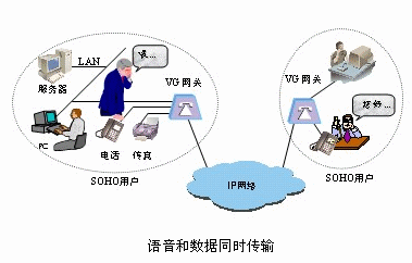 - 用戶通過VG 語音網(wǎng)關(guān)不僅可以接入到寬帶城域網(wǎng)上,而且還可以經(jīng)過Internet和國際用戶進(jìn)行IP電話/傳真通訊。