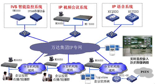 圖:大連萬(wàn)達(dá)集團(tuán)視頻,語(yǔ)音,監(jiān)控融合方案