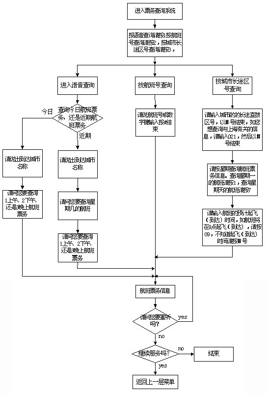 該系統(tǒng)主要采用語音技術(shù)實現(xiàn)航班信息查詢,系統(tǒng)的主業(yè)務(wù)流程如圖一至五示。