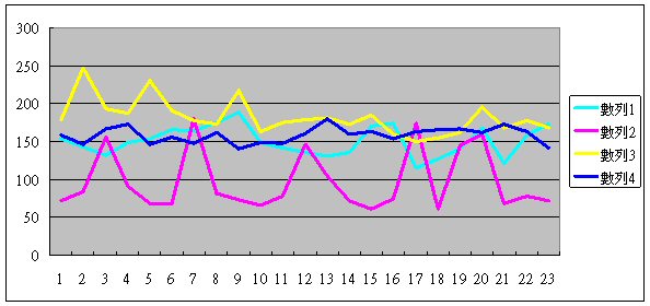 這里的四條線,分別代表了一個座席員的情況,黃色這條線代表的座席員在1號的時候,平均通話時長差不多是180秒,二號增加到250秒,之后慢慢減少到17號的150秒,以及23號的170秒。