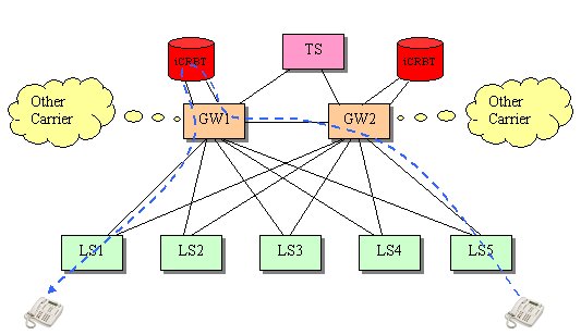 圖7 每個(gè)端局交換機(jī)配置一套iCRBT系統(tǒng)(無(wú)迂回)