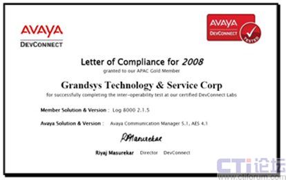 2008年7月 —Grandsys(宏盛高新技術有限公司)宣布其自創(chuàng)品牌[Grandsys LOG8000 錄音與質檢解決方案]正式通過AVAYA DevConnect 的認證。Grandsys正是全球為數(shù)不多的已經通過該項認證的AVAYA 合作伙伴之一,包含知名廠家Nice及Verint等,這代表Grandsys的技術已達到國際知名廠家的水平, 國內客戶也因此有機會享受到最優(yōu)質的產品及服務。