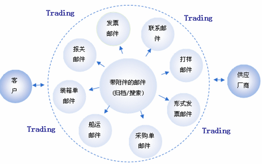 郵件是貿(mào)易中不可缺少的技術(shù)工具,郵件系統(tǒng)提供郵件的收發(fā)和管理,但是它并沒(méi)有提供和線索、活動(dòng)、客戶、供應(yīng)商、訂單集成的功能。Trading