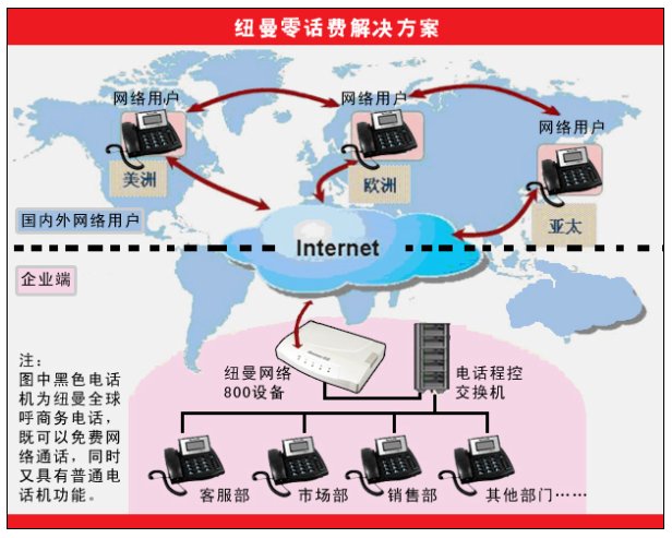 電話通訊技術(shù)發(fā)明以來(lái)最震撼的革命——零話費(fèi)解決方案由紐曼開(kāi)始,該方案由紐曼全球呼智能商務(wù)電話和網(wǎng)絡(luò)800組成,操作簡(jiǎn)單、音質(zhì)清晰,通話雙方用普通電話機(jī)實(shí)現(xiàn)免費(fèi)通話。