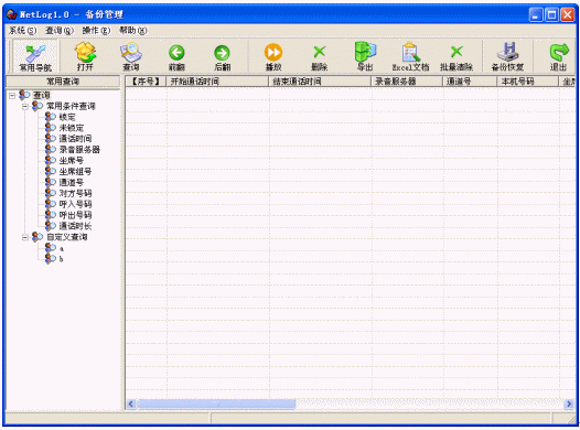 針對(duì)備份語音記錄文件(包括DVD光盤備份和磁盤備份)查詢、管理功能,查詢過程以及錄音操作與錄音管理功能模塊完全相同,此外還提供了恢復(fù)的功能。