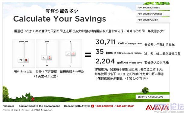 彈性辦公到底能省多少?Avaya在線節(jié)能計算器幫你算