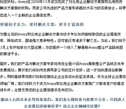 [Avaya/Nortel整合產(chǎn)品線(xiàn)渠道招募會(huì)10城市]