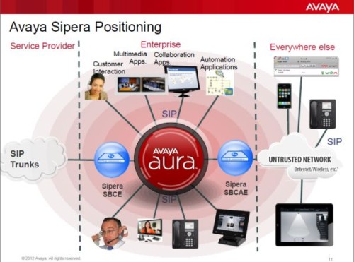 收購Sipera,Avaya獲得了適用于會話啟動協(xié)議(SIP)中繼的企業(yè)級會話邊界控制技術(shù),從而增強Avaya統(tǒng)一通信產(chǎn)品線的實力,并為客戶和渠道合作伙伴提供更大的靈活性,幫助他們實現(xiàn)各種安全功能進而創(chuàng)造商業(yè)價值。Sipera開放的、基于標準的解決方案適用于Avaya和非Avaya網(wǎng)絡。Sipera解決方案與Avaya Aura整合后,將能為客戶提供安全的VoIP、SIP中繼、視頻會議、基于云的通信、即時通信以及協(xié)作工具,使客戶能隨時隨地為使用企業(yè)級或消費類設(shè)備的員工提供服務。