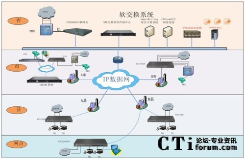 IP電話系統(tǒng)項(xiàng)目方案設(shè)計(jì)共分省、地州市、縣(市)三級進(jìn)行部署,按照省集團(tuán)至地州市分集團(tuán)、縣(市)級分集團(tuán)及營業(yè)廳建設(shè),全網(wǎng)通過部署相應(yīng)的IP電話設(shè)備(含語音軟交換、接入網(wǎng)關(guān)、PC軟電話、網(wǎng)管軟件、計(jì)費(fèi)軟件等),組建全省IP電話系統(tǒng)。