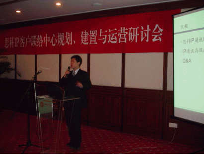 2點(diǎn)整,主持人宣布會議正式開始。首先是正音科技公司執(zhí)行副總秦裕農(nóng)先生致開幕詞。秦先生從2000多年前的周幽王烽火戲諸侯娓娓道來,一直講到IP技術(shù)在音頻、視頻上的應(yīng)用,為大家生動形象地描述了通訊技術(shù)發(fā)展的歷程。在演講的最后,秦先生指出了一個(gè)客戶聯(lián)絡(luò)中心所應(yīng)該具備的特性:"在這個(gè)客戶聯(lián)絡(luò)中心里,客戶應(yīng)該能夠隨時(shí)隨地的通過電話、傳真、郵件、網(wǎng)絡(luò)電話、文字聊天、web協(xié)同等各種各樣的方式,第一時(shí)間找到企業(yè),解決他們的問題;在這個(gè)客戶聯(lián)絡(luò)中心里,企業(yè)能夠廉價(jià)地把分布于全國各地的服務(wù)資源聯(lián)系起來,進(jìn)行統(tǒng)籌管理,統(tǒng)一為客戶提供服務(wù);在這個(gè)客戶聯(lián)絡(luò)中心里,企業(yè)可以隨時(shí)把一個(gè)空閑的客戶服務(wù)人員調(diào)整為電話銷售人員,而不用去修改復(fù)雜系統(tǒng)設(shè)置;在這個(gè)客戶聯(lián)絡(luò)中心里,任何一個(gè)可以接入互聯(lián)網(wǎng)的員工,不管他身在地球的哪一個(gè)角落,都可以隨時(shí)隨地的接入系統(tǒng),變成一個(gè)坐席,為客戶提供專業(yè)的服務(wù)。"秦先生描述的這個(gè)完美的客戶聯(lián)絡(luò)中心立即博得了陣陣掌聲,同時(shí)也引起了與會者的極大興趣,如何才能實(shí)現(xiàn)這個(gè)猶如夢中的呼叫中心呢?"相信通過今天的研討會,各位會得到了一個(gè)滿意的答案",秦先生最后自信的向大家保證。