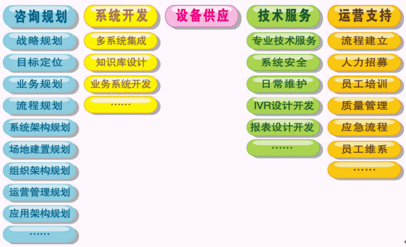 經過認真分析國內企業(yè)實施客戶聯(lián)絡中心系統(tǒng)的現(xiàn)狀,正音科技公司提出了綜合咨詢規(guī)劃、系統(tǒng)開發(fā)、設備供應、技術服務、運營支持等五個方面的客戶聯(lián)絡中心建置解決方案,不僅方便企業(yè)對整個建置過程進行整體上的把握,而且正音科技的專業(yè)團隊也能幫助企業(yè)實現(xiàn)最佳的效果。對于任何一個追求卓越客戶聯(lián)絡中心的企業(yè)來說,這五個方面都是作為一個整體,缺一不可的。
