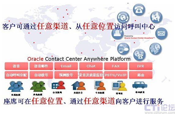 Center Anywhere的多通道技術(shù),能提供完善的“從客戶到座席”體驗(yàn)。甲骨文把聯(lián)絡(luò)中心技術(shù)與客戶關(guān)系管理和商業(yè)智能更緊密地結(jié)合起來,幫助客戶降低集成完全不同的聯(lián)絡(luò)中心與客戶管理管理資料、分析和通信技術(shù)的成本與復(fù)雜性。