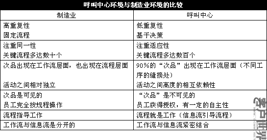 瀏覽一下這個(gè)表格之后,你還認(rèn)為原本用于制造業(yè)的一種流程改進(jìn)方法,也能夠適用于屬于變動(dòng)環(huán)境的呼叫中心嗎?
