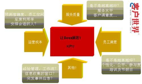 所以,我們認(rèn)為呼叫中心的運(yùn)營(yíng)解決方案,應(yīng)該綜合協(xié)調(diào)人力資源管理、話務(wù)預(yù)測(cè)、自動(dòng)排班、績(jī)效考評(píng)、話務(wù)分析、現(xiàn)場(chǎng)管理、實(shí)時(shí)預(yù)警等各個(gè)現(xiàn)場(chǎng)管理要素。各個(gè)要素之間即是相互獨(dú)立,又相互關(guān)聯(lián)的,系統(tǒng)通過設(shè)置目標(biāo)值,達(dá)到管理目標(biāo)的均衡,這個(gè)平衡,從最核心的體現(xiàn)來看,就是一個(gè)完整的KPI體系中各個(gè)指標(biāo)的實(shí)現(xiàn)。