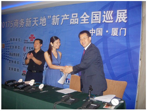 2007年6月27日,中寬網(wǎng)信”101756商務(wù)新天地”新產(chǎn)品全國巡展廈門站在廈門喜來登酒店勝利召開。會(huì)議的主旨是向中小企業(yè)及呼叫中心用戶推出個(gè)性化的通信增值服務(wù)方案,提高企業(yè)競(jìng)爭(zhēng)力;同時(shí)為投資者提供投資小回報(bào)快的投資項(xiàng)目。此次會(huì)議得到了中國聯(lián)通的大力支持,廈門聯(lián)通數(shù)據(jù)部副總監(jiān)林長春先生表示中國聯(lián)通十分看好中國電信融合市場(chǎng)的巨大產(chǎn)業(yè)機(jī)會(huì),有信心與中寬網(wǎng)信真誠合作,利用雙方各自平臺(tái)優(yōu)勢(shì),深度合作,資源互補(bǔ),共同參與激烈的電信市場(chǎng)競(jìng)爭(zhēng)。
