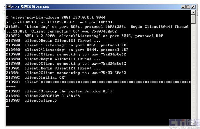 監(jiān)控后臺(tái)運(yùn)行dispport.bat(d:\gtexe\bin>udpcon 8051 127.0.0.1 8044)