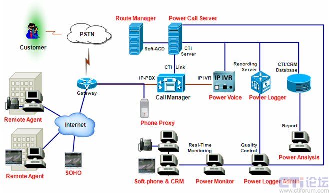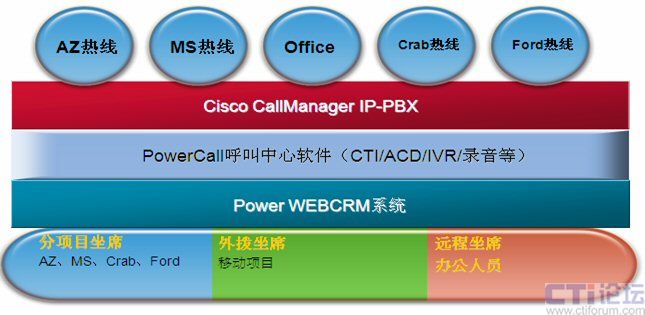 系統(tǒng)采用CISCO CallManager IP-PBX作為語音平臺,PCS提供全套軟件,包括:CTI、排隊(duì)、IP-IVR、錄音和CRM,對MicroCall外包呼叫中心的各項(xiàng)需求都給出了滿意的解決方案。