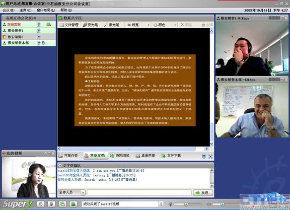 CTI論壇(ctiforum)05月19日消息: 自08年攜手視維Super-V視頻會(huì)議以來,中石油雅安分公司銷售部的日常工作會(huì)議高效及時(shí)地開展,尤其是在5.12四川大地震后,工作不但沒有中斷,而且足不出戶就可以給上級(jí)領(lǐng)導(dǎo)匯報(bào)工作,與同事交流營銷心得。而在以前,只能通過電話或者郵件,甚至長途跋涉聚集到一個(gè)地方舉行會(huì)議,既浪費(fèi)時(shí)間又增加營銷成本。這是繼中國重汽、新加坡協(xié)美集團(tuán)等跨國集團(tuán)公司倡導(dǎo)信息時(shí)代新營銷主義,實(shí)現(xiàn)高效運(yùn)營的又一典型案例應(yīng)用。