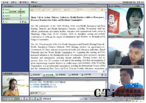 CTI論壇(ctiforum)10月16日消息:近日,世衛(wèi)組織用視維Super-V視頻會議軟件召開亞太地區(qū)會議,討論第三屆APEDNN的各項(xiàng)議題。參加會議的成員主要有中國、菲律賓、新加坡、馬來西亞、緬甸、日本、泰國等幾十個國家和地區(qū)的代表。