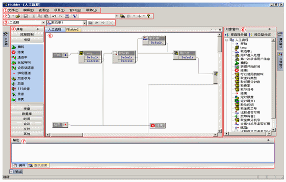 該工具包為方便客戶將來自行開發(fā)各種各樣的業(yè)務(wù)流程,向用戶提供了功能強(qiáng)大、使用方便的業(yè)務(wù)開發(fā)工具,該開發(fā)平臺的功能包括對語音播放、錄音、接受DTMF的處理;包括呼叫的控制、對信令部分的簡單控制、對計(jì)費(fèi)話單形成的控制;包括了對數(shù)據(jù)庫操作的多種申請、算術(shù)計(jì)算、邏輯運(yùn)算等部分功能函數(shù),利用這些函數(shù),用戶可以生成各種各樣的業(yè)務(wù)流程。
