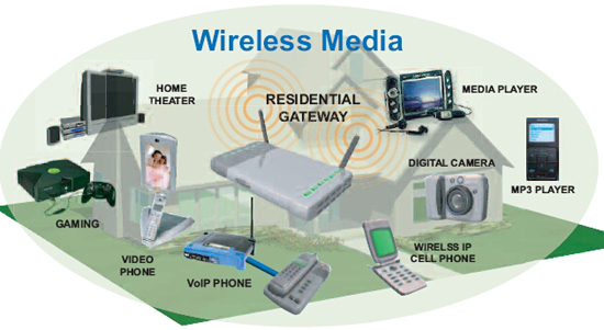 在家中傳送廣播質(zhì)量的視頻將需要住宅網(wǎng)關(guān)整合多種有線和無(wú)線技術(shù)、安全特性和服務(wù)質(zhì)量(QoS)能力。住宅網(wǎng)關(guān)需要支持最新的無(wú)線連網(wǎng)技術(shù),例如目前的802.11g以及暫露頭角的802.11n、802.11d/e和802.11r標(biāo)準(zhǔn)。多種有線家庭連網(wǎng)技術(shù)也在考慮之內(nèi),所以住宅網(wǎng)關(guān)應(yīng)能支持以太網(wǎng)、同軸電纜多媒體聯(lián)盟(MOCA)、家用電話線網(wǎng)絡(luò)聯(lián)盟(HPNA)、家庭插電聯(lián)盟(HPPA)和通用電力線協(xié)會(huì)(UPA)等機(jī)構(gòu)推出的有線家庭聯(lián)網(wǎng)技術(shù)。