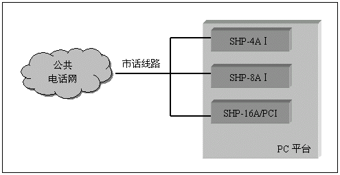 單純的語音系統(tǒng)(不需要座席,傳真等附加功能),可以采用SHP-4A、SHP-8A和SHP-16A系列的模擬線語音卡來構(gòu)成,并且不需要連接卡間交換總線,這類系統(tǒng)如證券電話委托系統(tǒng),語音信箱留言系統(tǒng),銀行稅務查詢催繳系統(tǒng)等,其典型系統(tǒng)結(jié)構(gòu)如下: