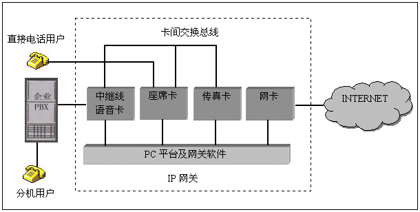 電話語音卡在IP網(wǎng)關(guān)中的典型應用結(jié)構(gòu)如下: