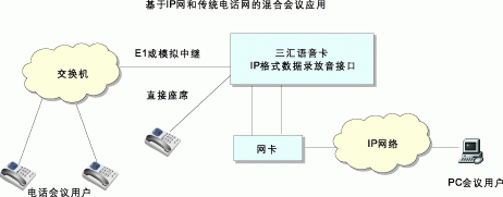 交互式電話會(huì)議與傳統(tǒng)的電話會(huì)議的區(qū)別就在于開會(huì)時(shí)不需要由會(huì)議主持人控制由某人發(fā)言,而是所有與會(huì)者可以自由發(fā)言,就如同坐在同一間會(huì)議室中一樣。三匯公司所有型號(hào)的基于DSP技術(shù)的語(yǔ)音卡,包括數(shù)字卡和模擬卡,均內(nèi)置了對(duì)交互式電話會(huì)議的支持,只要使用語(yǔ)音卡,無(wú)需額外的會(huì)議卡,就可以構(gòu)成具有完善功能的交互式電話會(huì)議系統(tǒng)。三匯公司還采用了獨(dú)創(chuàng)的分布式電話會(huì)議實(shí)現(xiàn)技術(shù),電話會(huì)議的關(guān)鍵資源----混音器分布在每一個(gè)通道中。因此語(yǔ)音卡對(duì)會(huì)議系統(tǒng)的支持具有極大的靈活性,既可以召開大量的三方會(huì)議,也可召開所有通道同時(shí)參加的大型會(huì)議,無(wú)論是會(huì)議的數(shù)量還是參加會(huì)議的人數(shù)均只受系統(tǒng)總通道數(shù)的限制。三匯語(yǔ)音卡還支持IP會(huì)議和傳統(tǒng)電話會(huì)議的混合應(yīng)用。