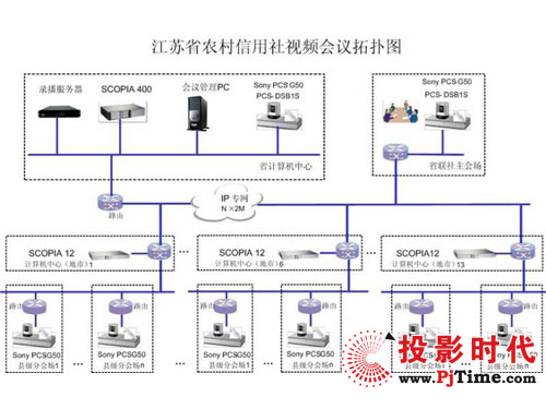 本次設(shè)計(jì)方案中,上海索高通過對江蘇農(nóng)信社的全省分布和各地實(shí)際需求,提供72套Sony PCS-G50視頻會(huì)議終端,IP網(wǎng)絡(luò)支持最大4Mbps的視頻傳輸速率,為用戶提供4CIF的高質(zhì)量視頻效果,配合H.264的強(qiáng)大功能一起獲得更高的媒體處理能力。通過Radvision