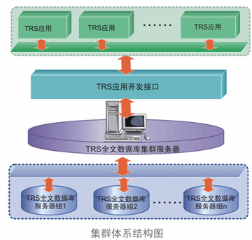 TRS全文數(shù)據(jù)集群服務(wù)器,是架構(gòu)在多個(gè)物理TRS全文數(shù)據(jù)庫(kù)服務(wù)器之上的分布式管理系統(tǒng),它支持?jǐn)?shù)據(jù)分布及負(fù)載均衡兩種方式,并支持兩種方式的組合運(yùn)用,滿足用戶海量數(shù)據(jù)和高并發(fā)環(huán)境下的分布式檢索、檢索性能和可靠性要求。