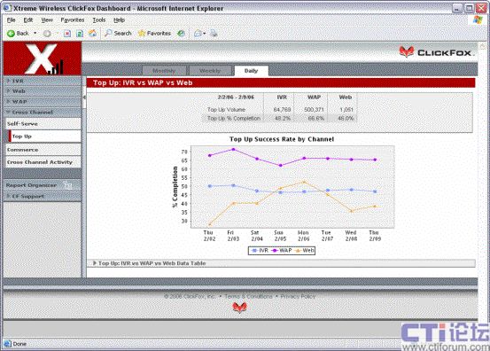 Clickfox 是唯一的一項(xiàng)技術(shù),它可以真正向你顯示當(dāng)客戶與您的自助服務(wù)系統(tǒng)進(jìn)行互動時,你的客戶到底發(fā)生了什么事情。是IVR、WEB、混亂或以上的組合。明確問題所在,有針對性地進(jìn)行改進(jìn),其結(jié)果是大量成本的節(jié)省、增強(qiáng)的創(chuàng)收能力和改進(jìn)的客戶滿意度。