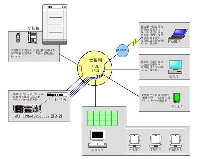 :在支持PSTN普通用戶(包括固話用戶和移動用戶)的同時,支持局域網上計算機用戶的訪問,同時,支持具備無線接入能力的筆記本電腦和PDA用戶的訪問,用戶無論在什么時候、在什么地方,只要能連接Internet網絡,就能訪問到MediaServer媒體服務器。