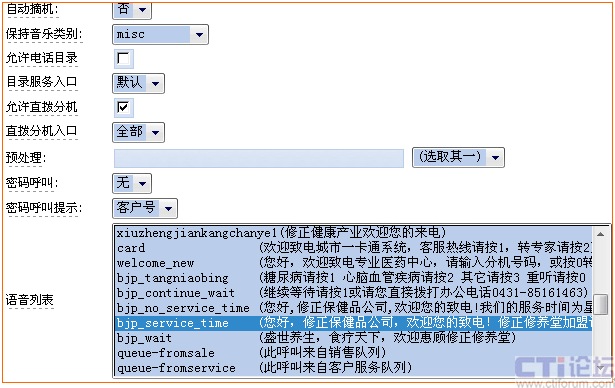 - 自動語音應答(IVR):實現(xiàn)全天候自助式服務。通過系統(tǒng)的交互式應答服務,來電者可以很容易的通過電話機鍵盤輸入他們的選擇,從而得到24小時的服務。用戶根據(jù)自己的業(yè)務需求自主錄制多層次IVR語音自動應答流程,并在更換之后能夠和后臺的程序相結(jié)合(如增加一個流程、刪除一個流程、跳過某個流程等)。根據(jù)需要,也可以將來電者轉(zhuǎn)移到不同的服務組甚至不同的單位或者部門。