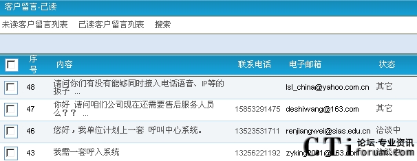 CSR2000中網(wǎng)站留言處理頁面圖示